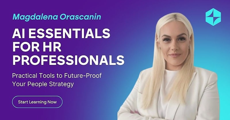 Ich habe kürzlich den Kurs „AI Essentials for HR Professionals“ unter der Leitung von Magdalena Orascanin absolviert und kann mit Überzeugung sagen, dass er ein Muss für alle HR-Führungskräfte ist, die ihre Fähigkeiten zukunftssicher machen möchten.