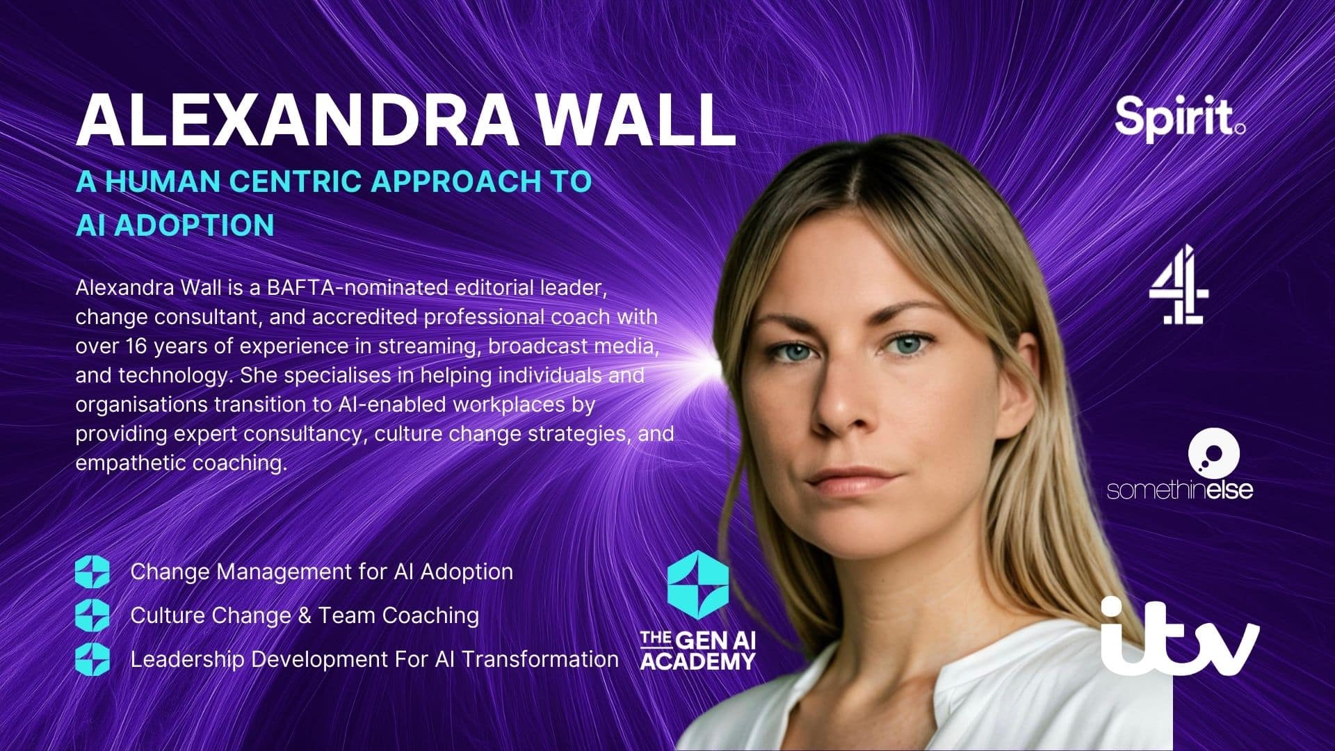 Alex Wall ist eine BAFTA-nominierte Redaktionsleiterin, Change-Beraterin und akkreditierte professionelle Coach mit über 16 Jahren Erfahrung in den Bereichen Streaming, Rundfunkmedien und Technologie. Sie ist darauf spezialisiert, Einzelpersonen und Organisationen beim Übergang zu KI-gestützten Arbeitsplätzen zu unterstützen, indem sie fachkundige Beratung, Strategien für den Kulturwandel und einfühlsames Coaching anbietet.
