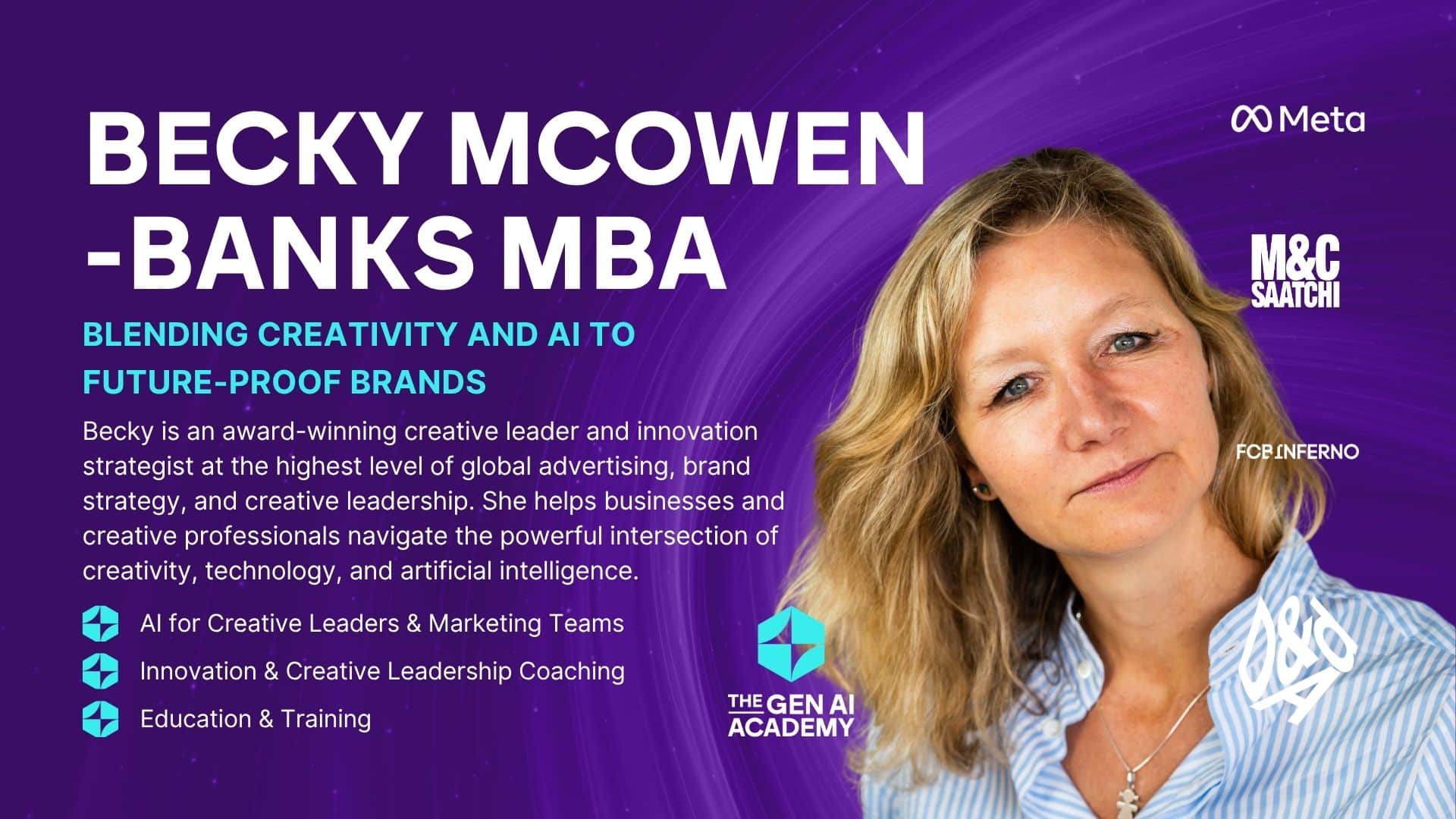 Becky McOwen-Banks ist eine preisgekrönte Kreativdirektorin und Innovationsstrategin, die über jahrzehntelange Erfahrung auf höchster Ebene in den Bereichen globale Werbung, Markenstrategie und kreative Führung verfügt. Mit ihrem umfangreichen Hintergrund in der Zusammenarbeit mit Agenturen, großen Marken und globalen Organisationen konzentriert sich Becky nun darauf, Unternehmen und Kreativprofis dabei zu unterstützen, sich im spannenden Spannungsfeld zwischen Kreativität, Technologie und künstlicher Intelligenz zurechtzufinden.