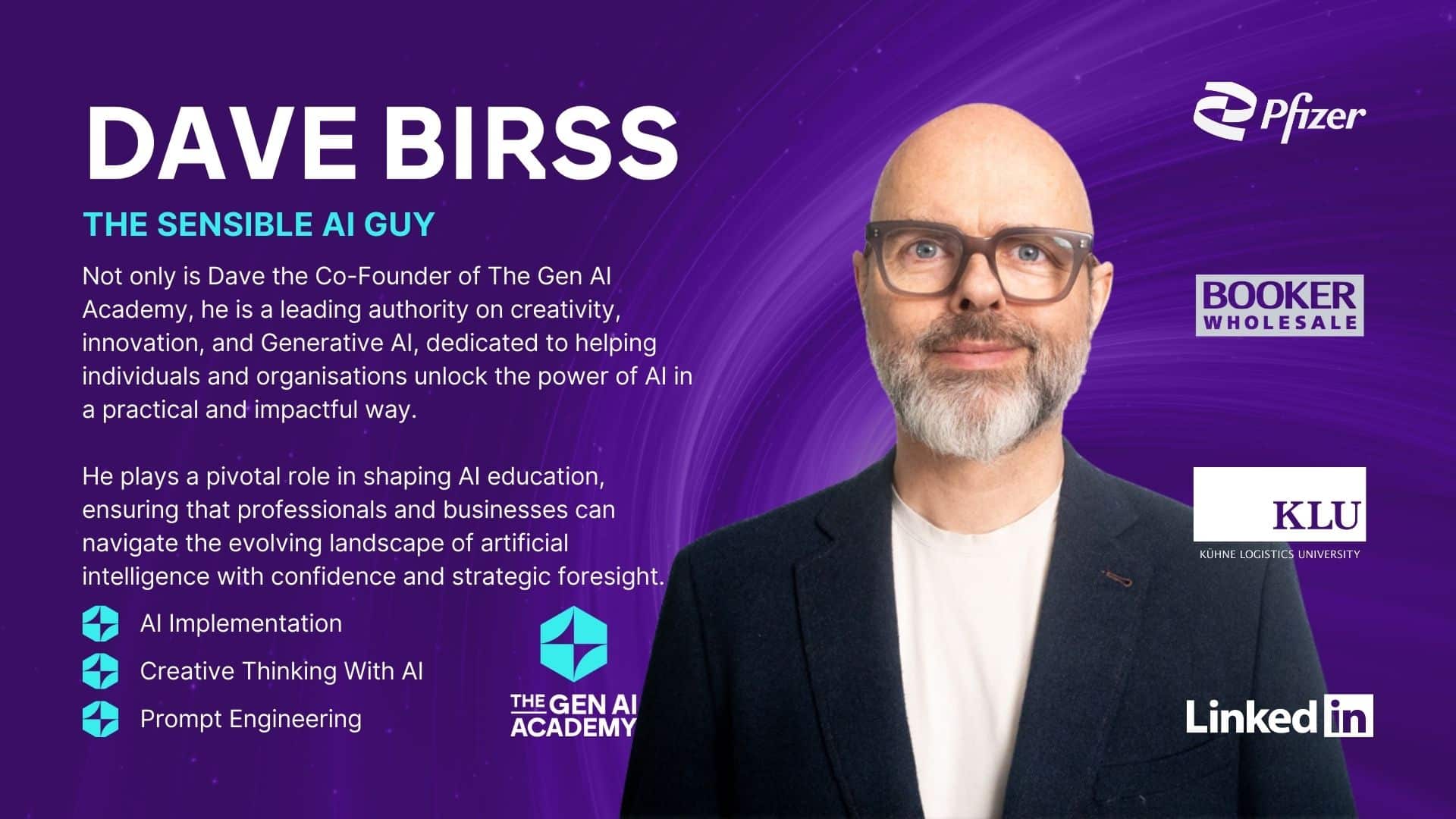 Dave Birss ist eine führende Autorität in den Bereichen Kreativität, Innovation und generative KI und hat es sich zur Aufgabe gemacht, Einzelpersonen und Organisationen dabei zu helfen, das Potenzial der KI auf praktische und wirkungsvolle Weise zu erschließen. Als Mitbegründer der Gen AI Academy spielt er eine zentrale Rolle bei der Gestaltung der KI-Ausbildung und sorgt dafür, dass Fachleute und Unternehmen sich mit Zuversicht und strategischer Weitsicht in der sich ständig weiterentwickelnden Landschaft der künstlichen Intelligenz zurechtfinden.