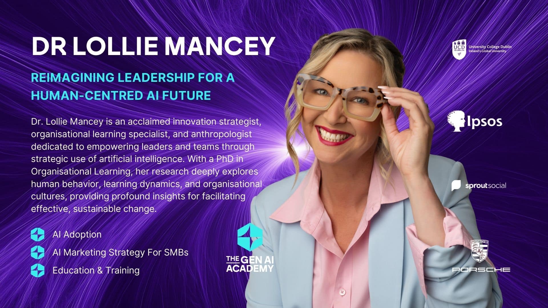Dr. Lollie Mancey, die als „Rockstar des geschäftlichen Denkprozesses” bezeichnet wird, ist Anthropologin, Futuristin und Pädagogin und dafür bekannt, komplexe Veränderungen klar und prägnant zu entschlüsseln. Sie betrachtet Innovation aus kultureller Perspektive und hilft Unternehmen dabei, die KI-Transformation mit ethischer Tiefe und kreativem Selbstvertrauen zu meistern. An der Gen AI Academy bietet Lollie Führungstrainings und strategische Einblicke, die Teams in die Lage versetzen, generative KI für mutige, menschenzentrierte Veränderungen zu nutzen.