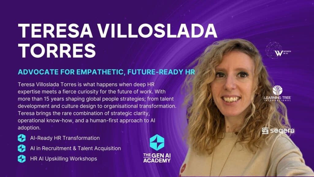 Teresa Villoslada Torres ist das Ergebnis einer Kombination aus fundierter HR-Expertise und einer ausgeprägten Neugierde für die Zukunft der Arbeit. Mit mehr als 10 Jahren Erfahrung in der Tech-Branche hat Teresa Villoslada Torres Beiträge in den Bereichen Talententwicklung, Kulturdesign und organisatorische Transformation geleistet. Teresa Villoslada Torres vereint strategische Klarheit, operatives Know-how und einen menschenorientierten Ansatz bei der Einführung von KI.